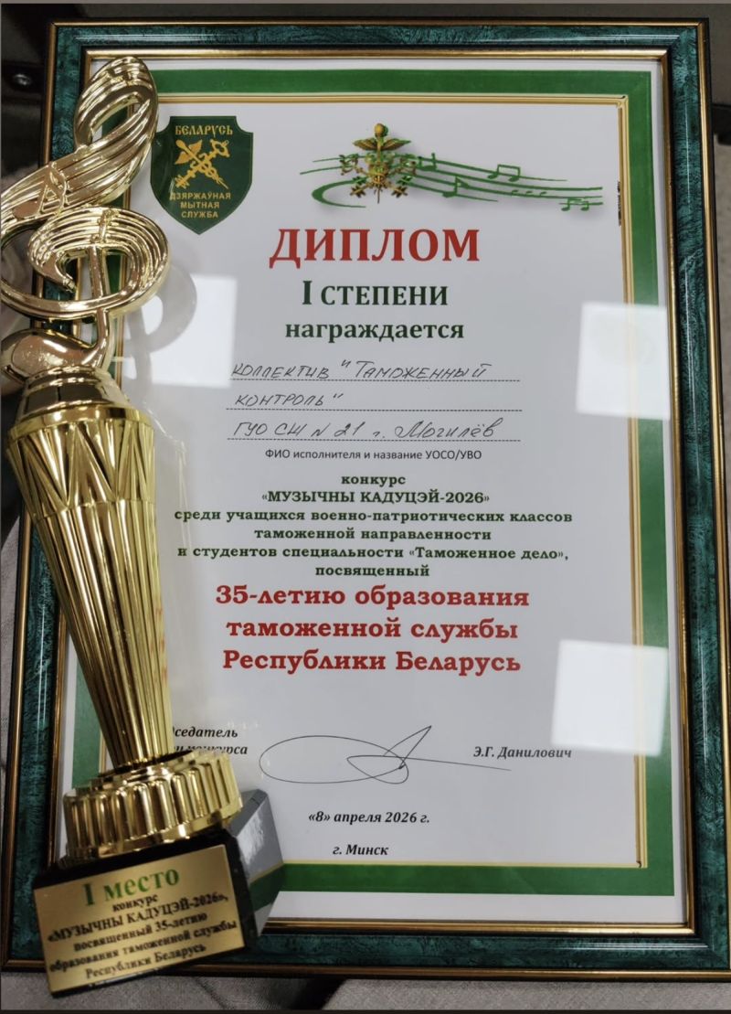Коллектив «Таможенный контроль», состоящий из учащихся ГУО «Средняя школа № 21 г.Могилева» одержал победу в конкурсе.