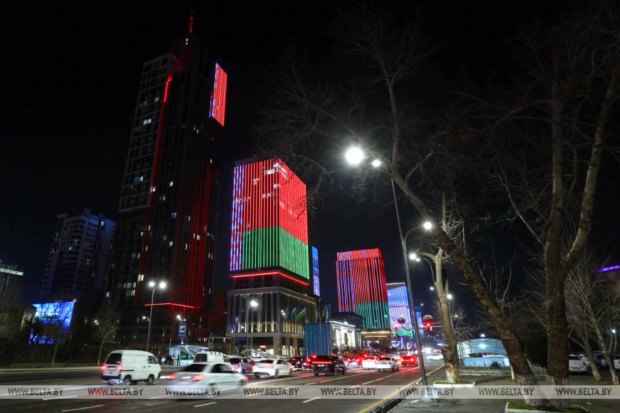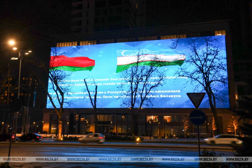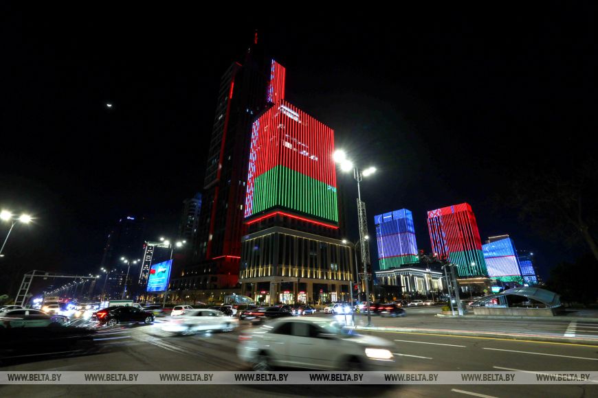 В знак особого уважения и нерушимой дружбы между народами Беларуси и Узбекистана в деловом центре Ташкента засияли цвета белорусского флага.