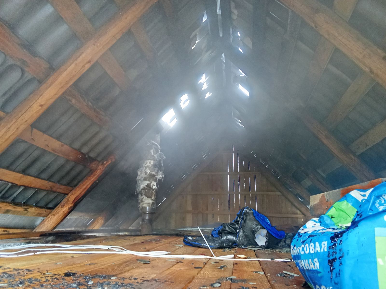 В результате пожара повреждено: кровля, перекрытие, закопчены стены. Пострадавших нет.