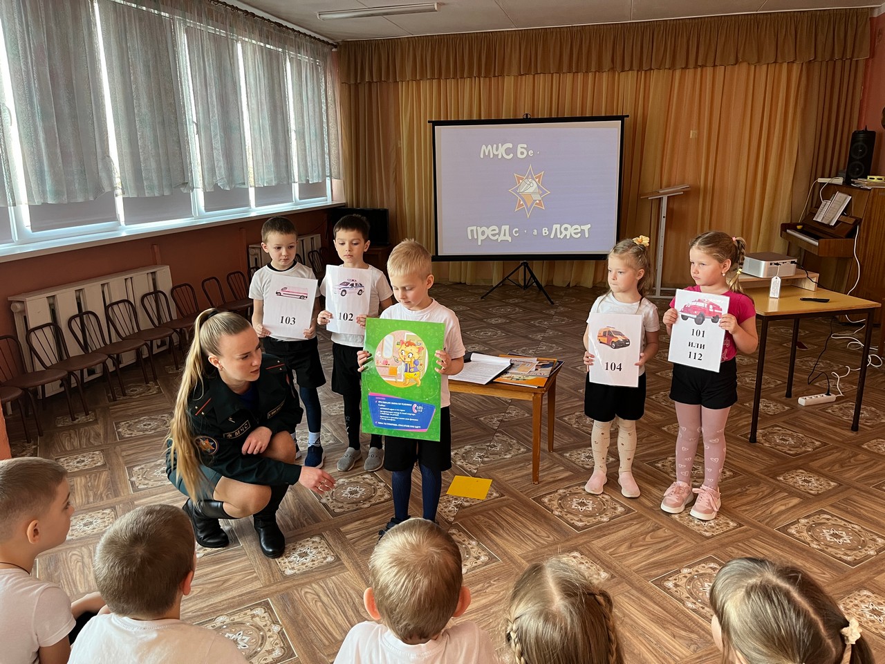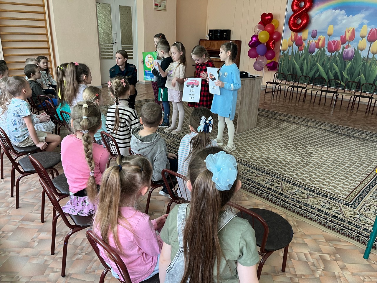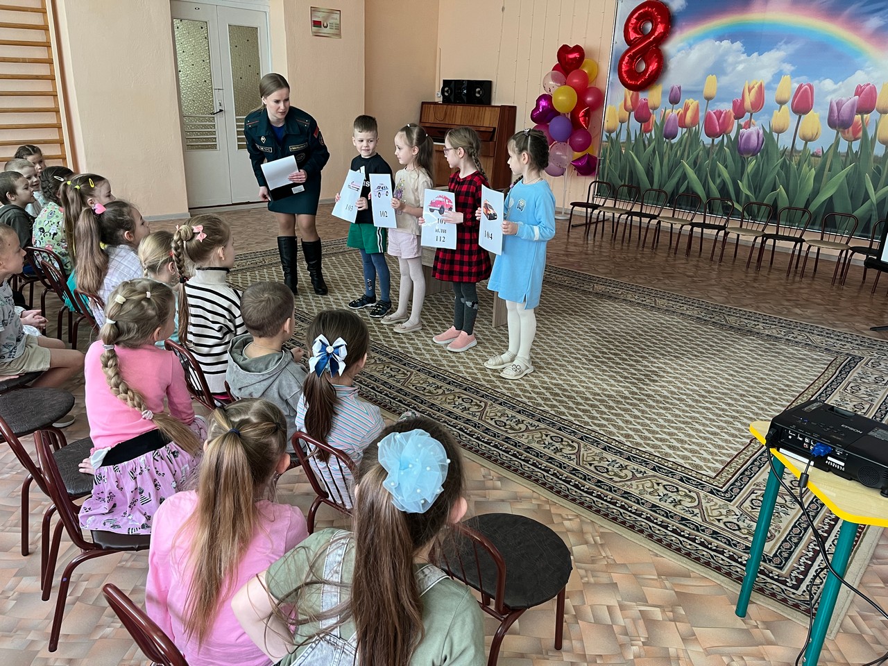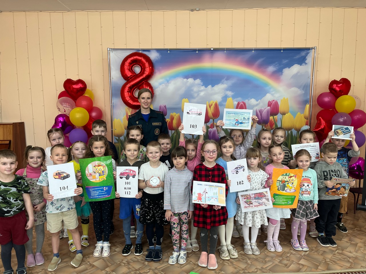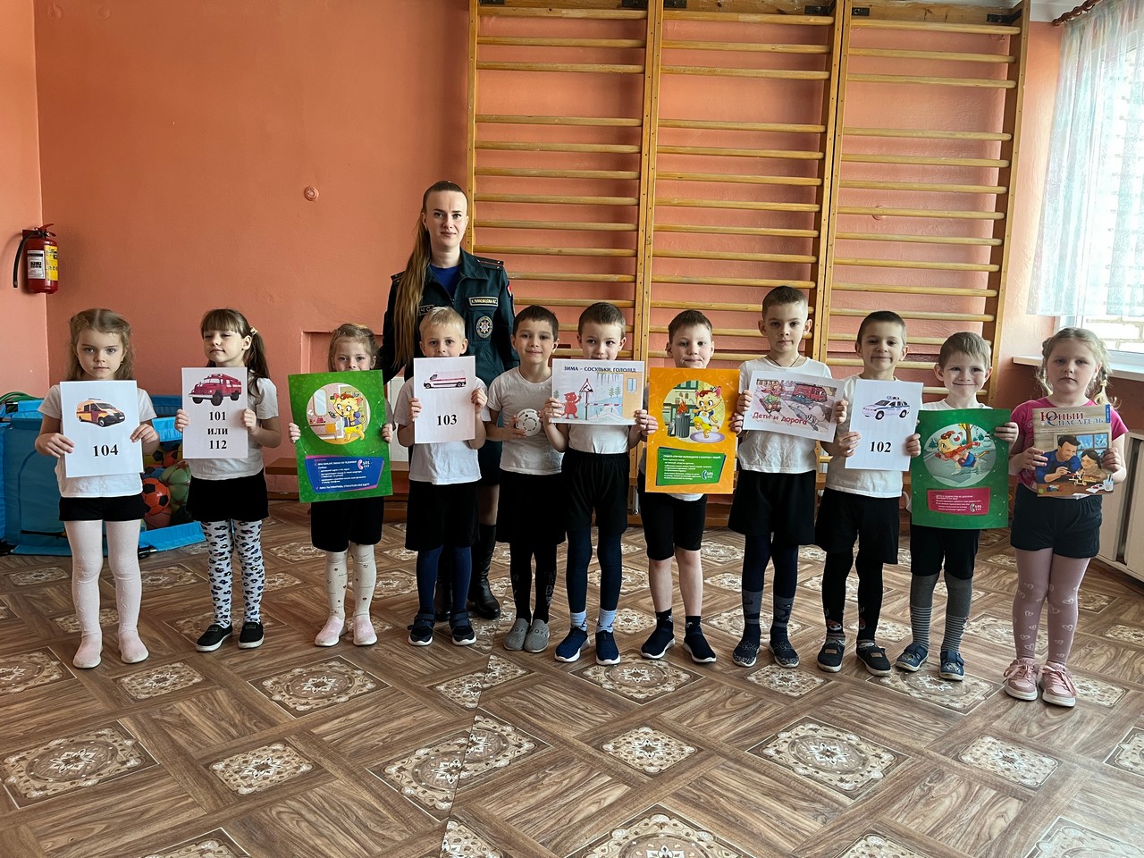Работница МЧС рассказывала детям о безопасности дома и на улице. Особое внимание уделялось поведению вблизи водоемов в зимний период, также инспектор напоминала алгоритм действий при выходе из задымленного помещения, номера, по которым можно вызвать спасателей.