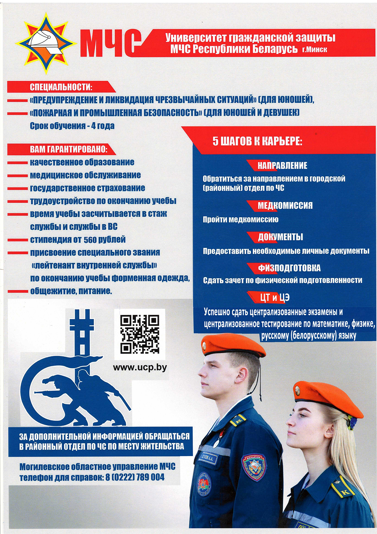 Дополнительную информацию о поступлении можно получить в Быховском районном отделе по чрезвычайным ситуациям по телефону 8 (02231) 56-990