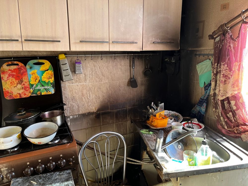 В результате пожара повреждено имущество, закопчены стены и потолок на кухне. Пострадавших нет.